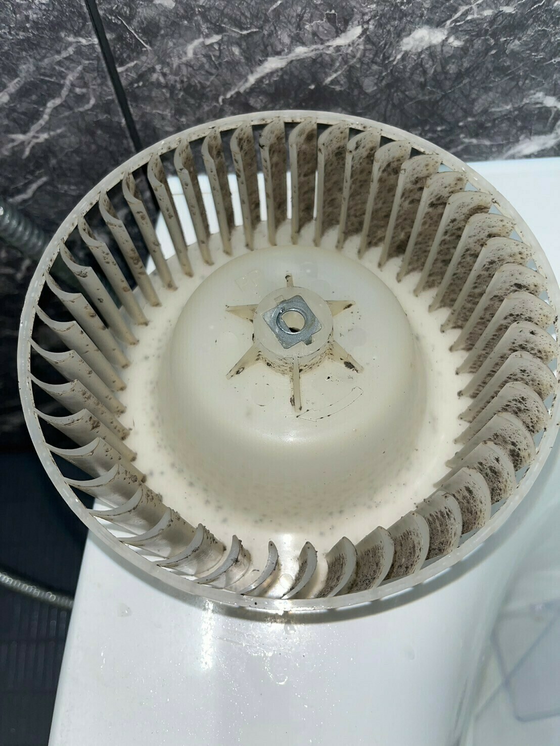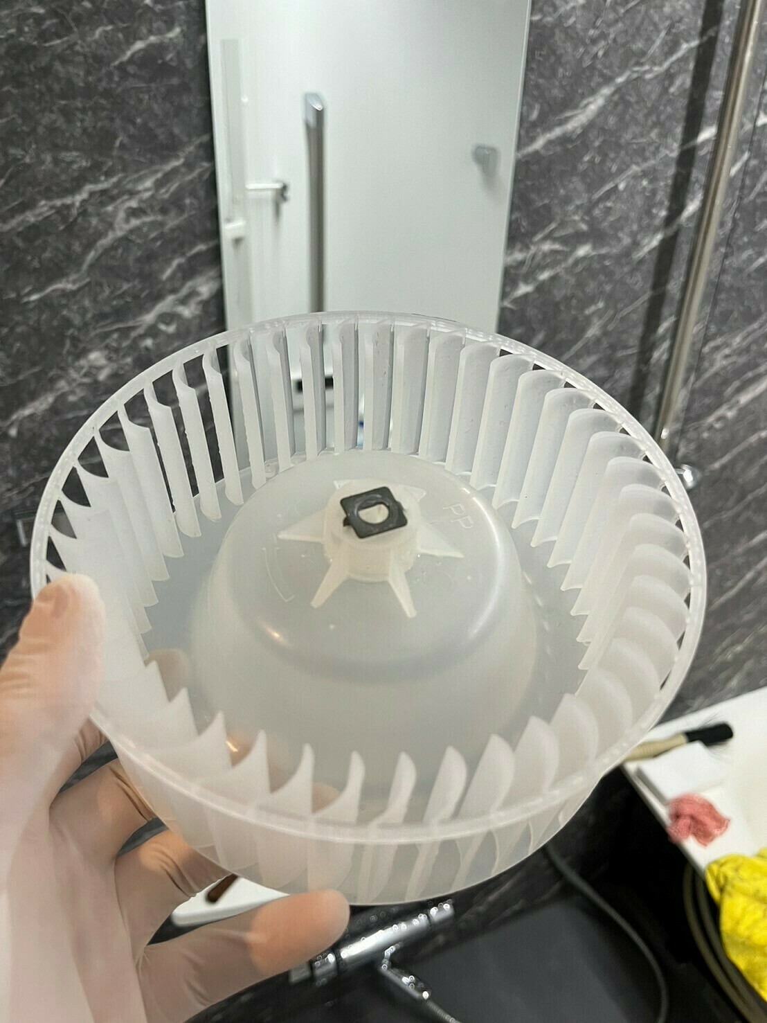 サムネイル画像にもあった浴室換気扇のファンのカバーは、ご覧のとおり黒カビが発生しています😱