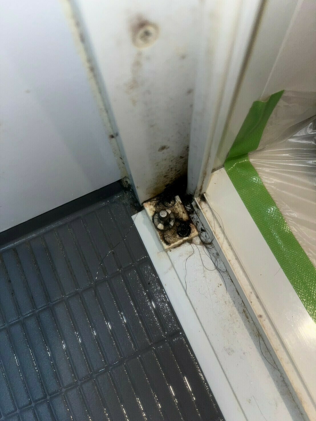 浴室の扉の脇の部分の汚れはごっそり落とすことができ、ドアのストッパー部分がしっかり見えるようになりました!!