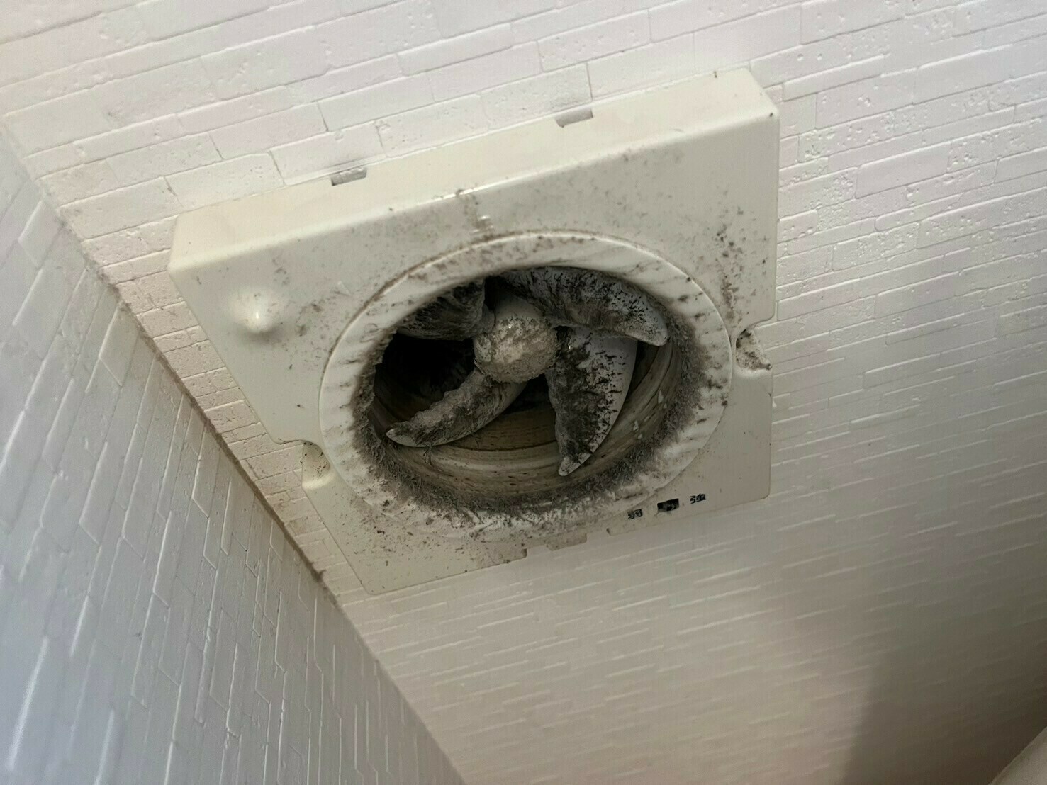 トイレの換気扇のファンには埃汚れがびっしり💦