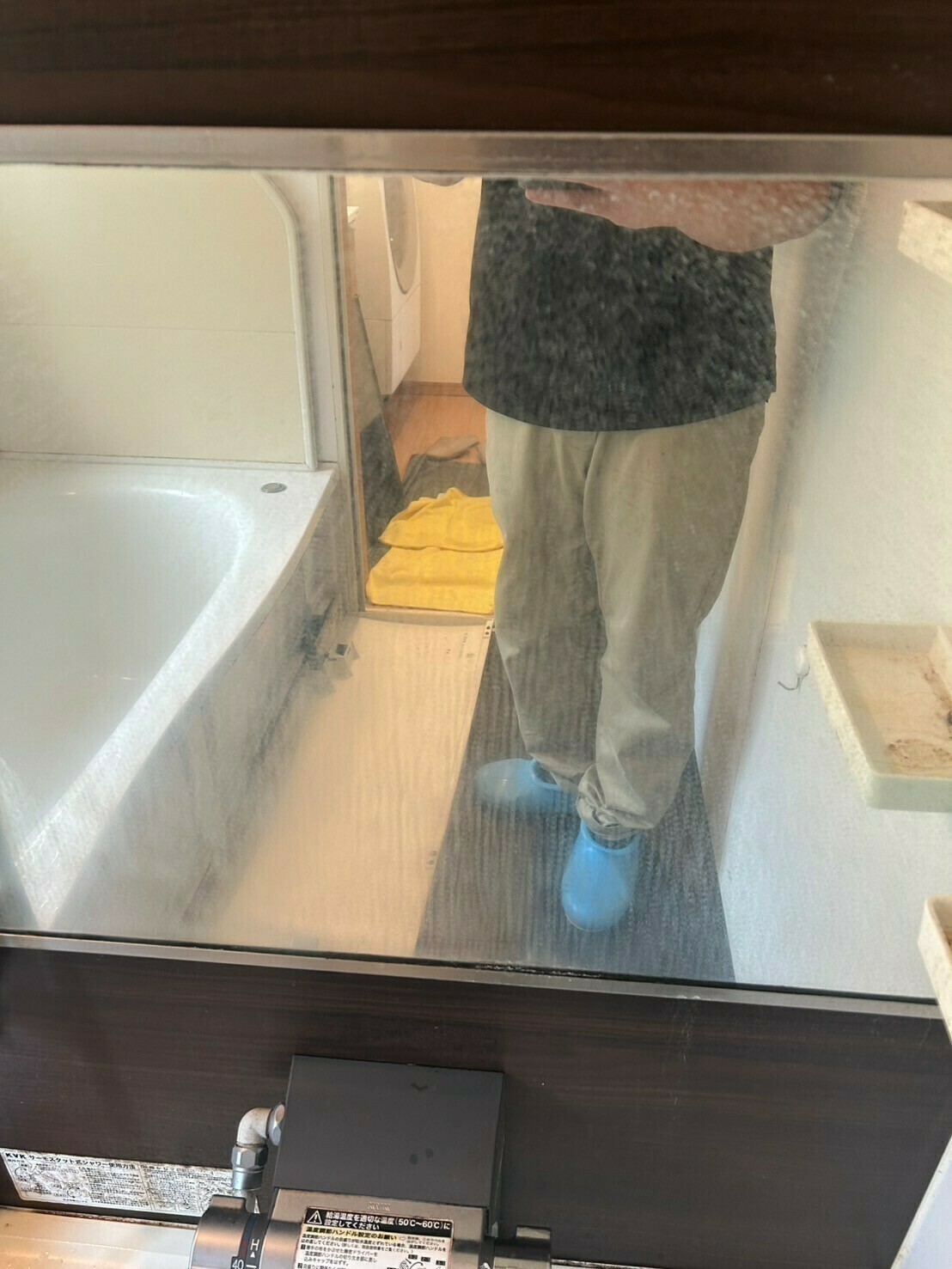 浴室の鏡は、ウロコ汚れがついていますね💦