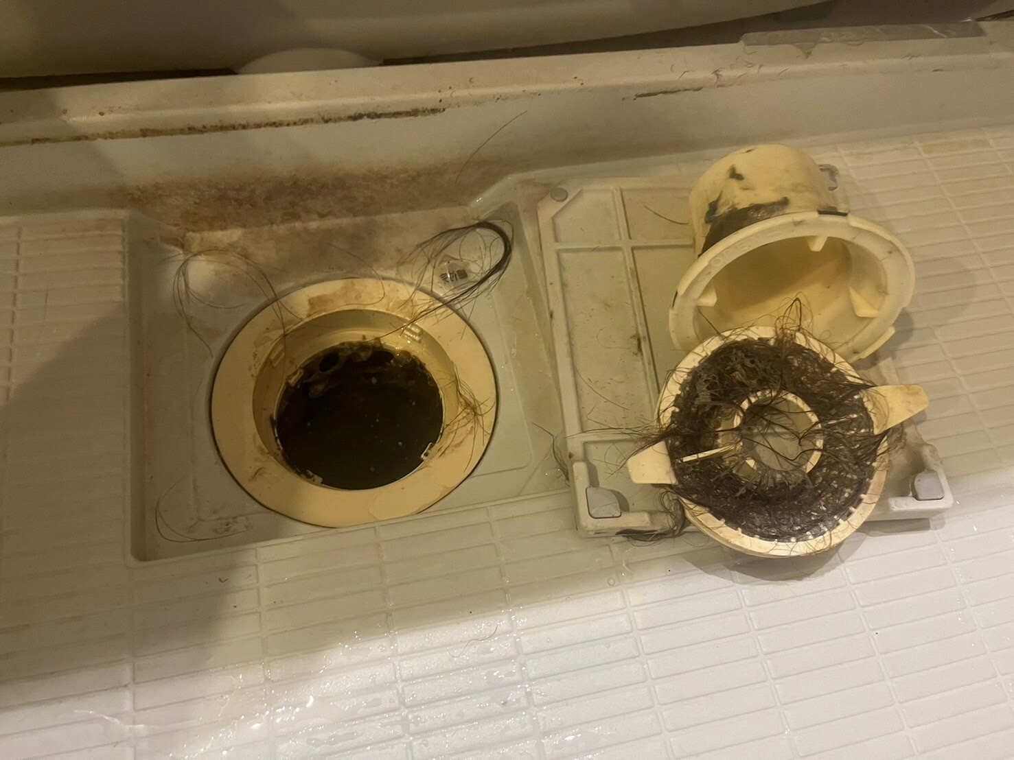 排水口のボタン周りには黒カビがついていますね💦