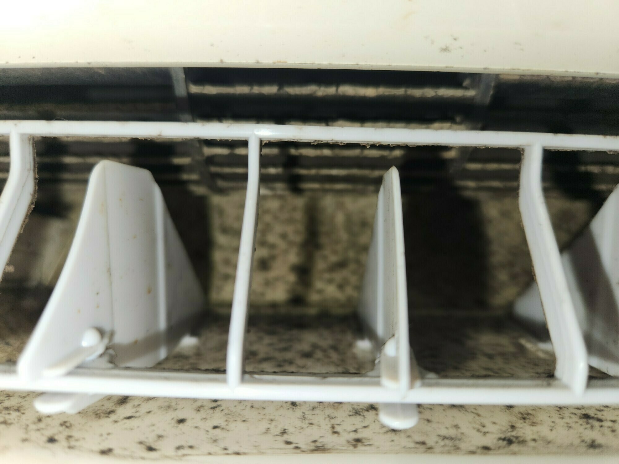 分解した部品を見てみると、カビをはじめとする汚れが溜まっていることが分かると思います。
