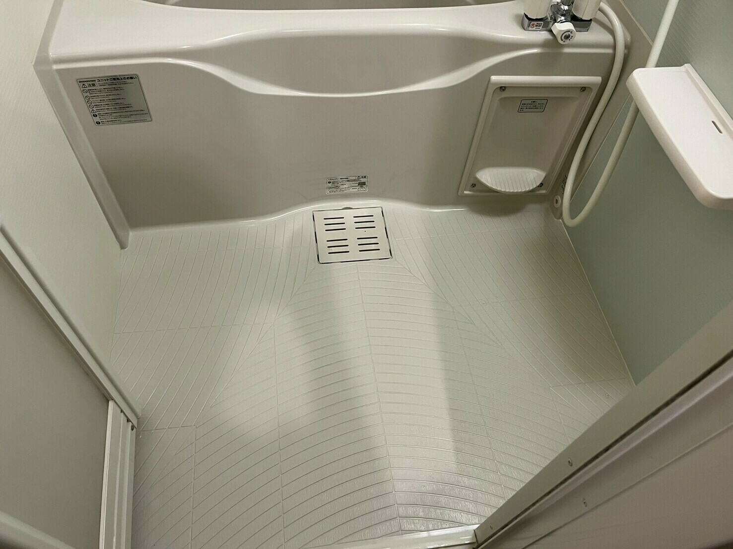 皮脂汚れや石鹼カス汚れで黒ずんでいた浴室の床の汚れは落ち、白く美しい綺麗な浴室になりました😆💕
