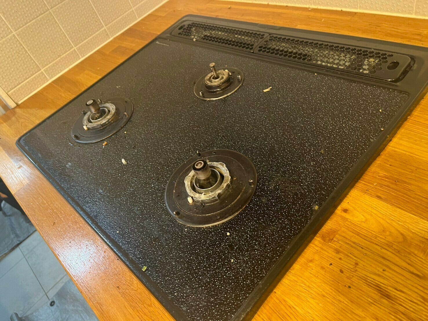 ガスコンロ周りには油汚れだけでなく、食品カス汚れもついていますね💦