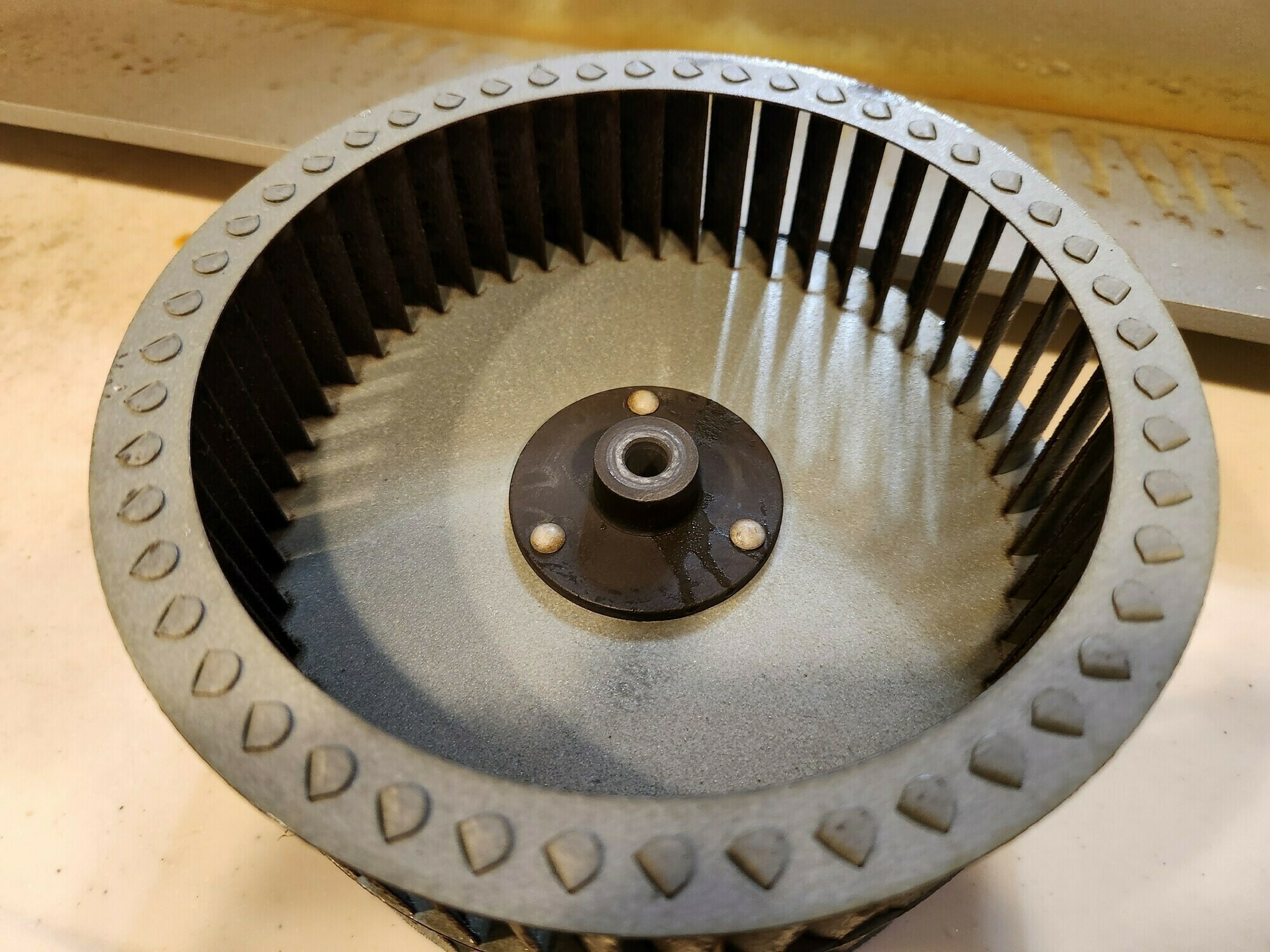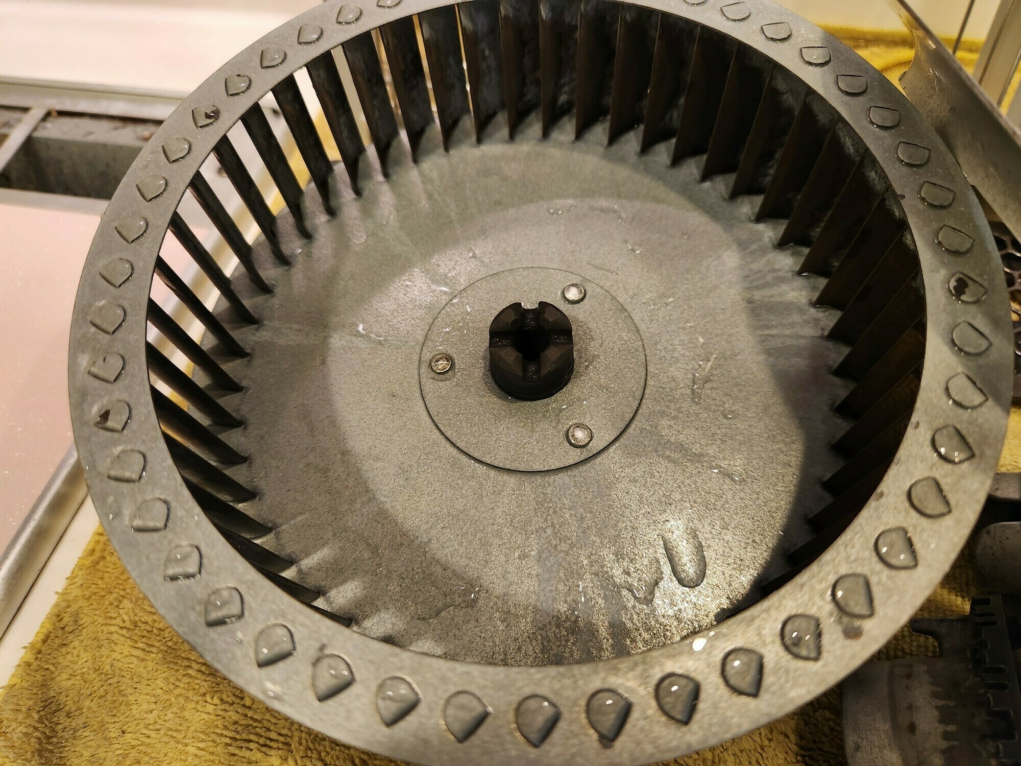 シロッコファンにもよく見ると油汚れがついていますね…