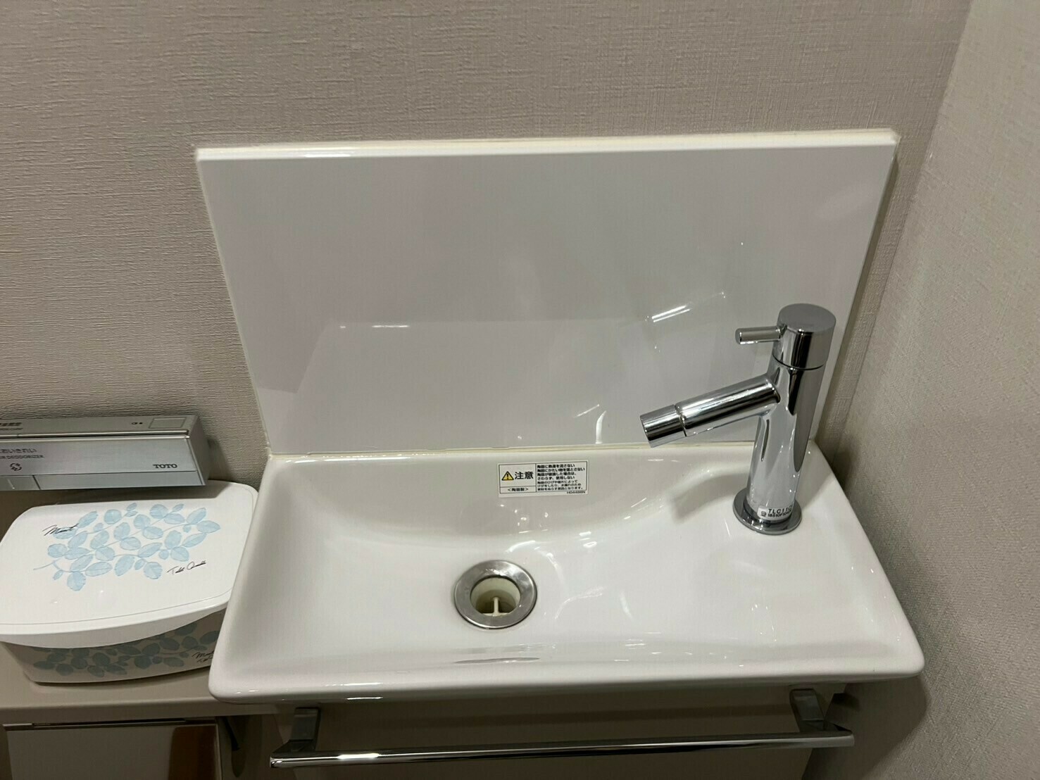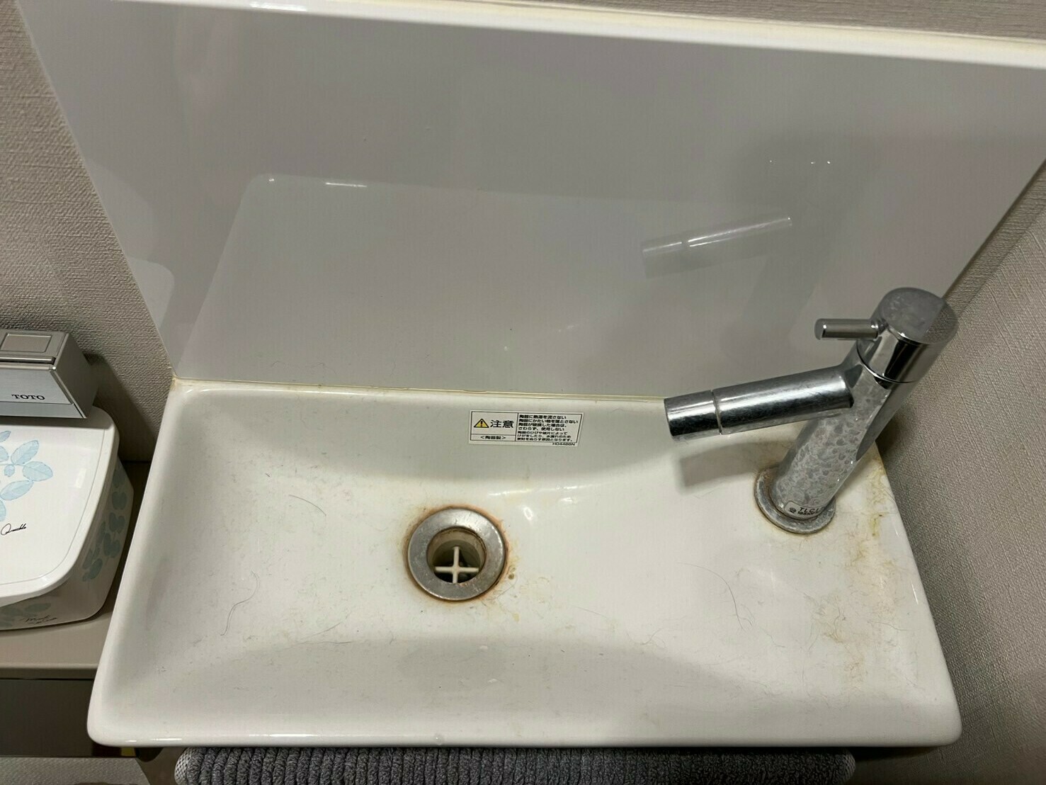 トイレに設置されている独立洗面台は、水垢汚れがたくさんついていますね😨