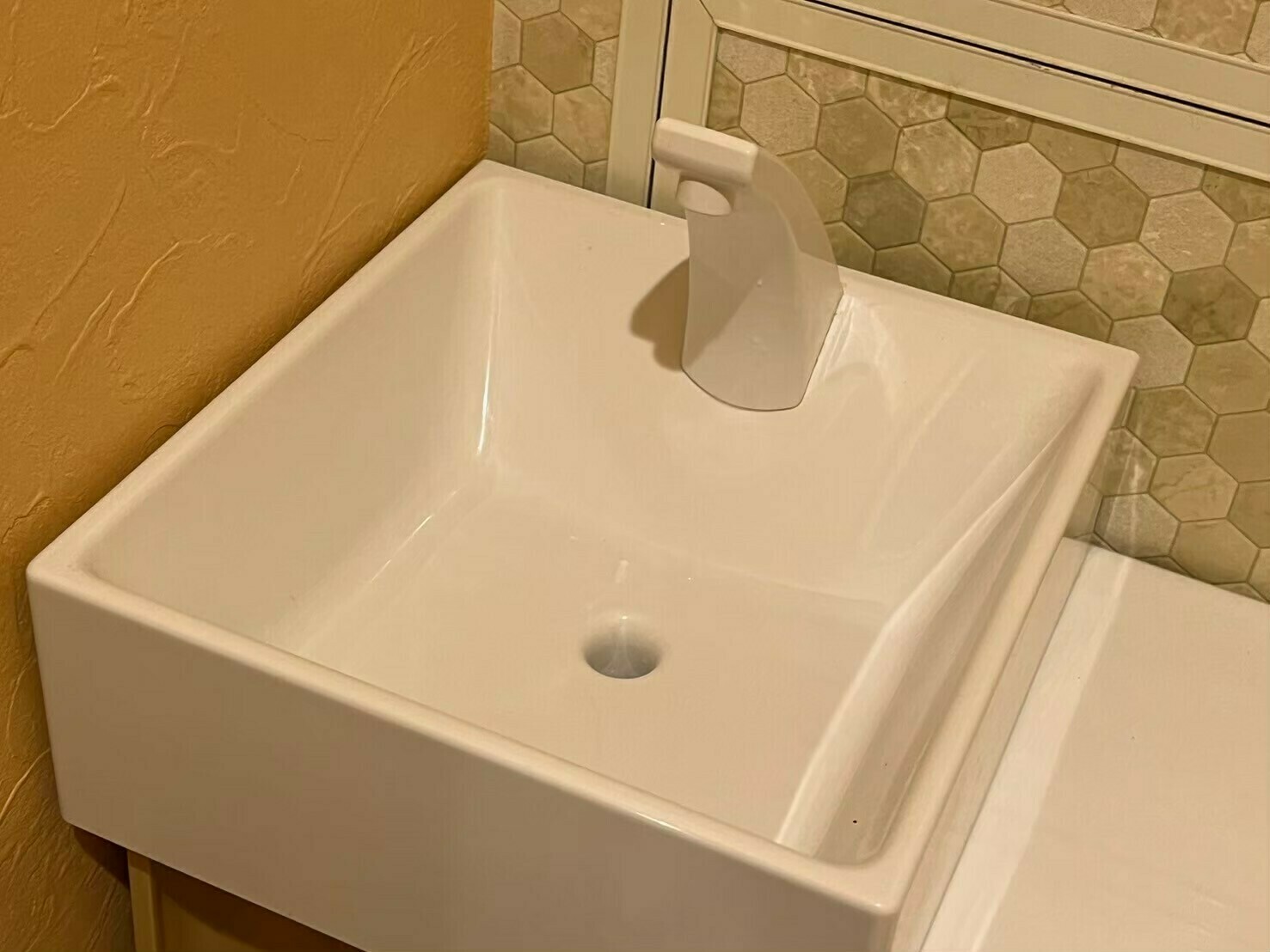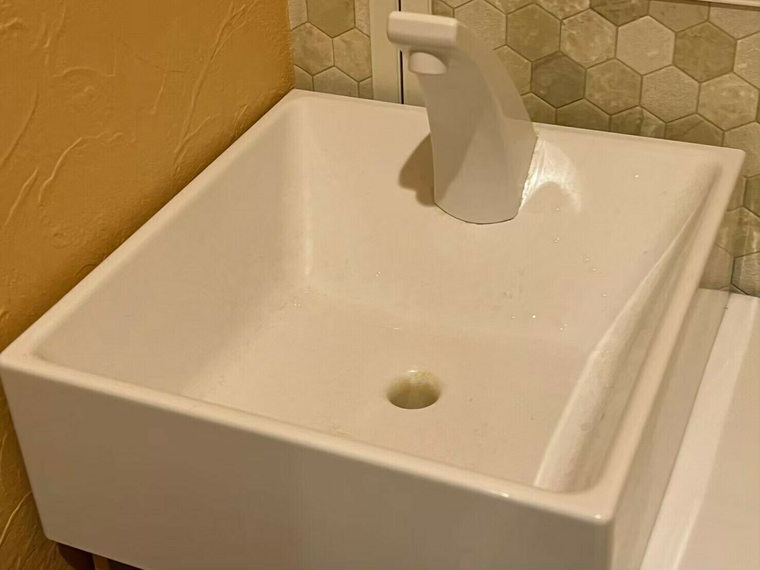 洗面台は水垢汚れがついていましたが、完全に落としきることができ、ツヤツヤすっきりした洗面台へと変身しました😊