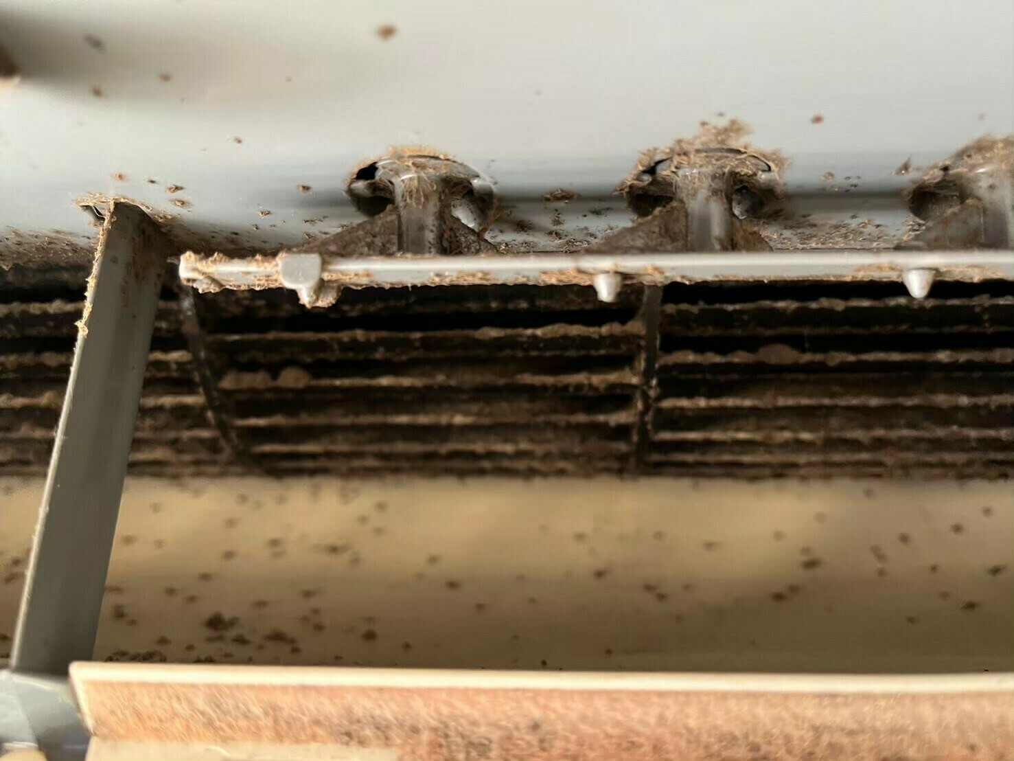送風口・送風ファン共に埃とカビ汚れがついています😨