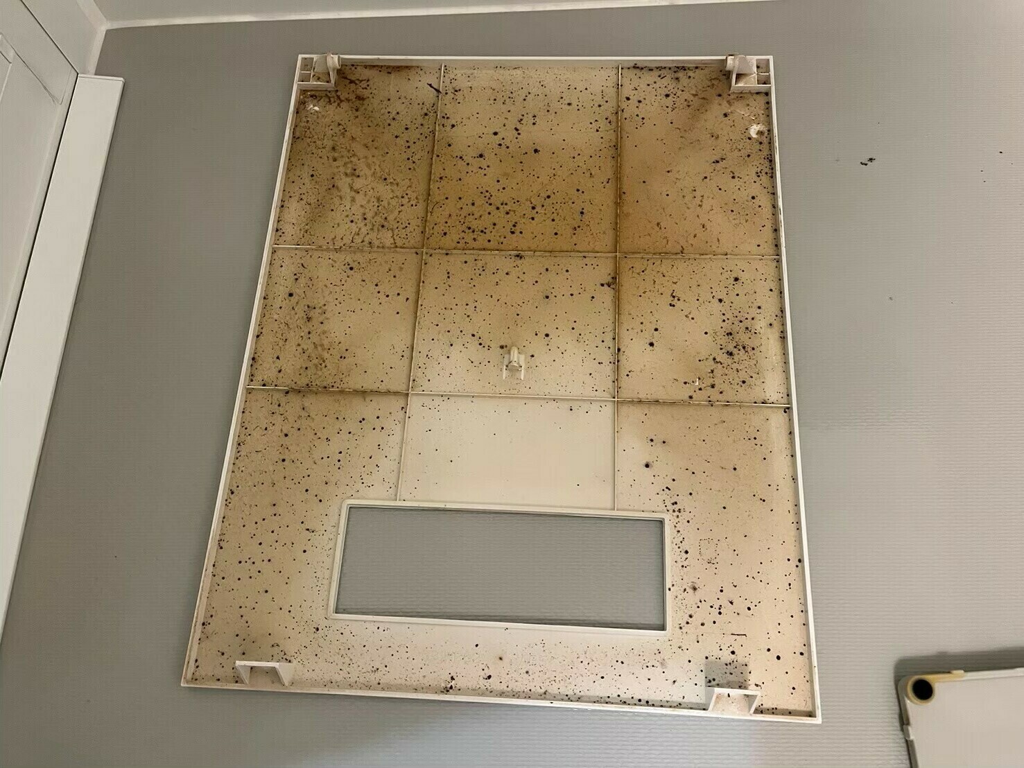 浴室乾燥機のカバーの内側には、黒カビ汚れがついていますね💦