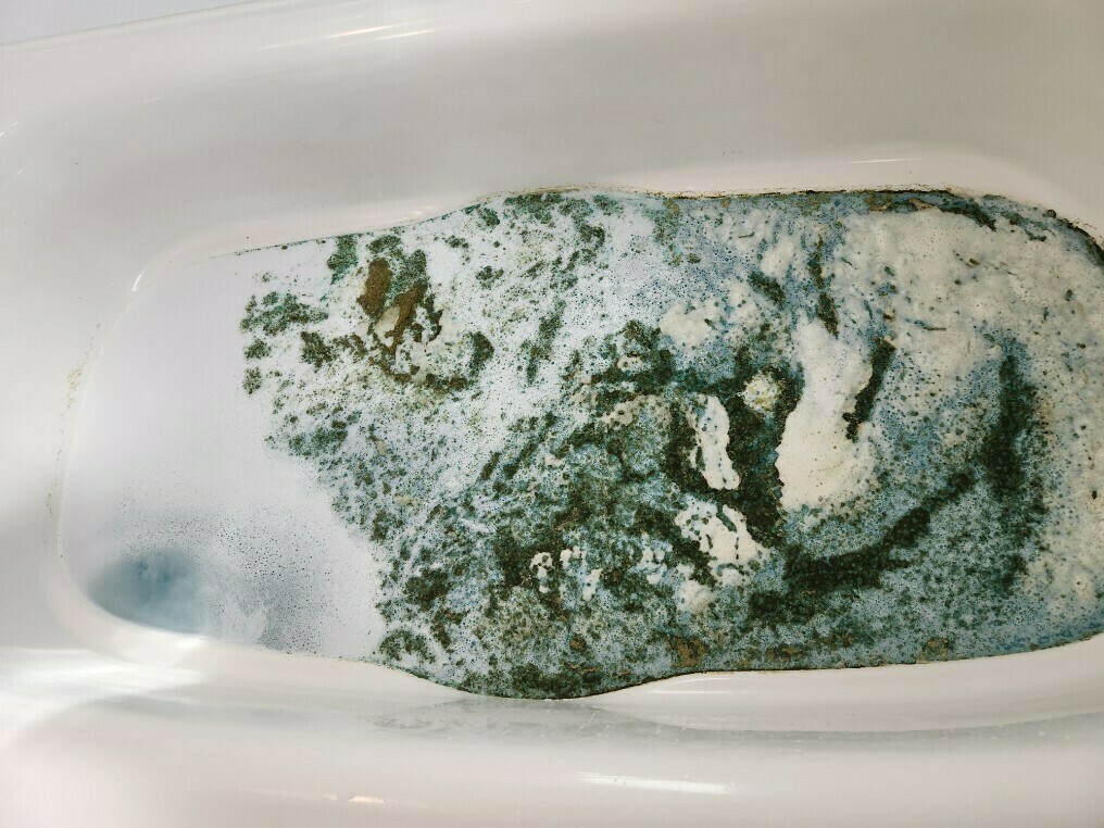 サムネイル画像にもあったこちらのバスタブ内の水は、ヘドロのような汚れでいっぱいになっていますね💦