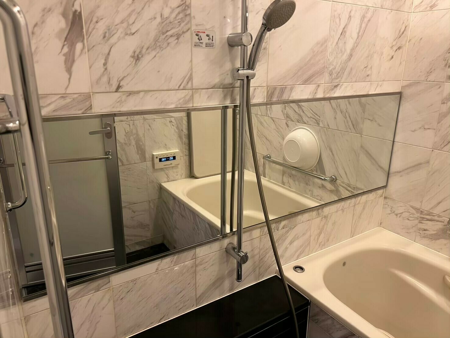 鏡もご覧のとおり、カルキ汚れとウロコ汚れを完全に落としきることができ、くっきり浴室全体が映るまでスッキリしました🥰